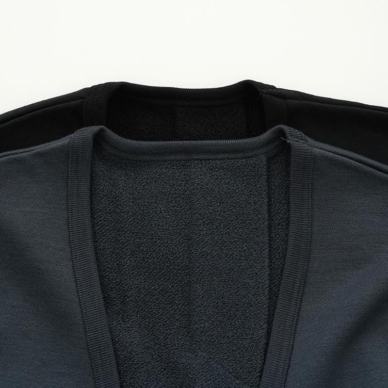 普遍的な新しさをテーマに、カッティングやテキスタイルにこだわり、シンプルながらこだわりを感じることが出来る飽きの来ない衣服を生み出すブランド「ゴーシュ」。 カシミアと同等の細さの『スーパー120's』に編んだ、ウォッシャブルウールニットです。 ウール100%素材ですが非常に柔らかで滑らかな質感です。 スエット生地なので伸縮性もあり、デイリーにもおすすめです。胸下まで開いたVネックが上品さを演出してくれ、インナーにカットソー、パンツはもちろん、ワンピースと合わせても素敵です。春先まで着ていただけます。インナーで印象の変わるワンピースをお楽しみください。 23AW size: 2 着丈108cm 身幅57cm 裄丈25cm color: グレイッシュネイビー / ブラック material: ウール100% model: 158cm 取り扱い店舗・・・dieci kyutaro店 2F 着用アイテム:ワンピース