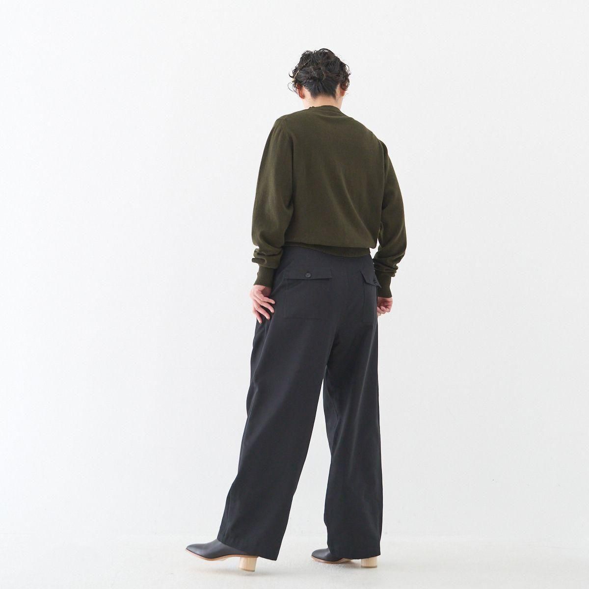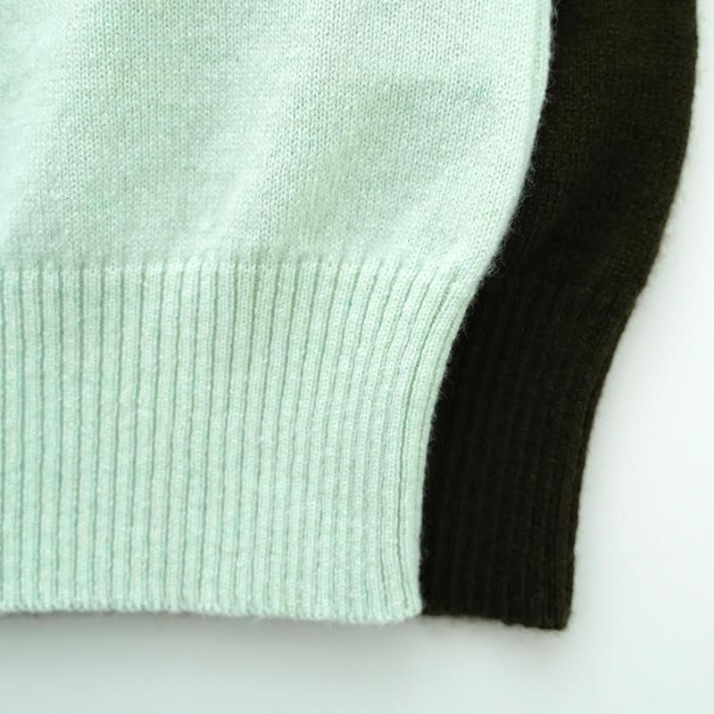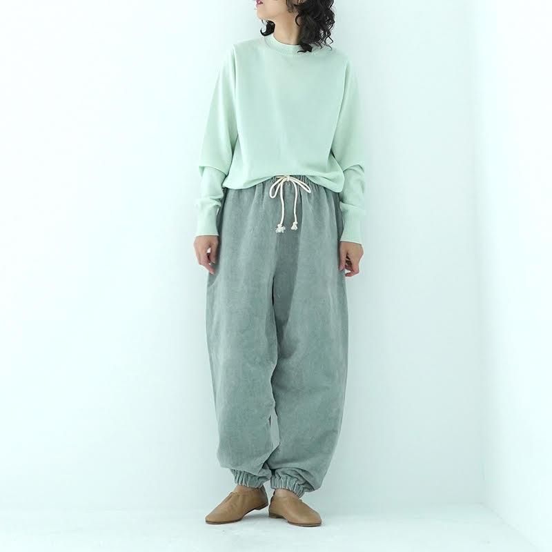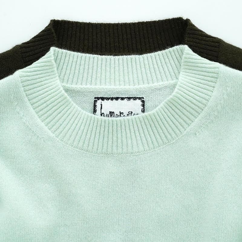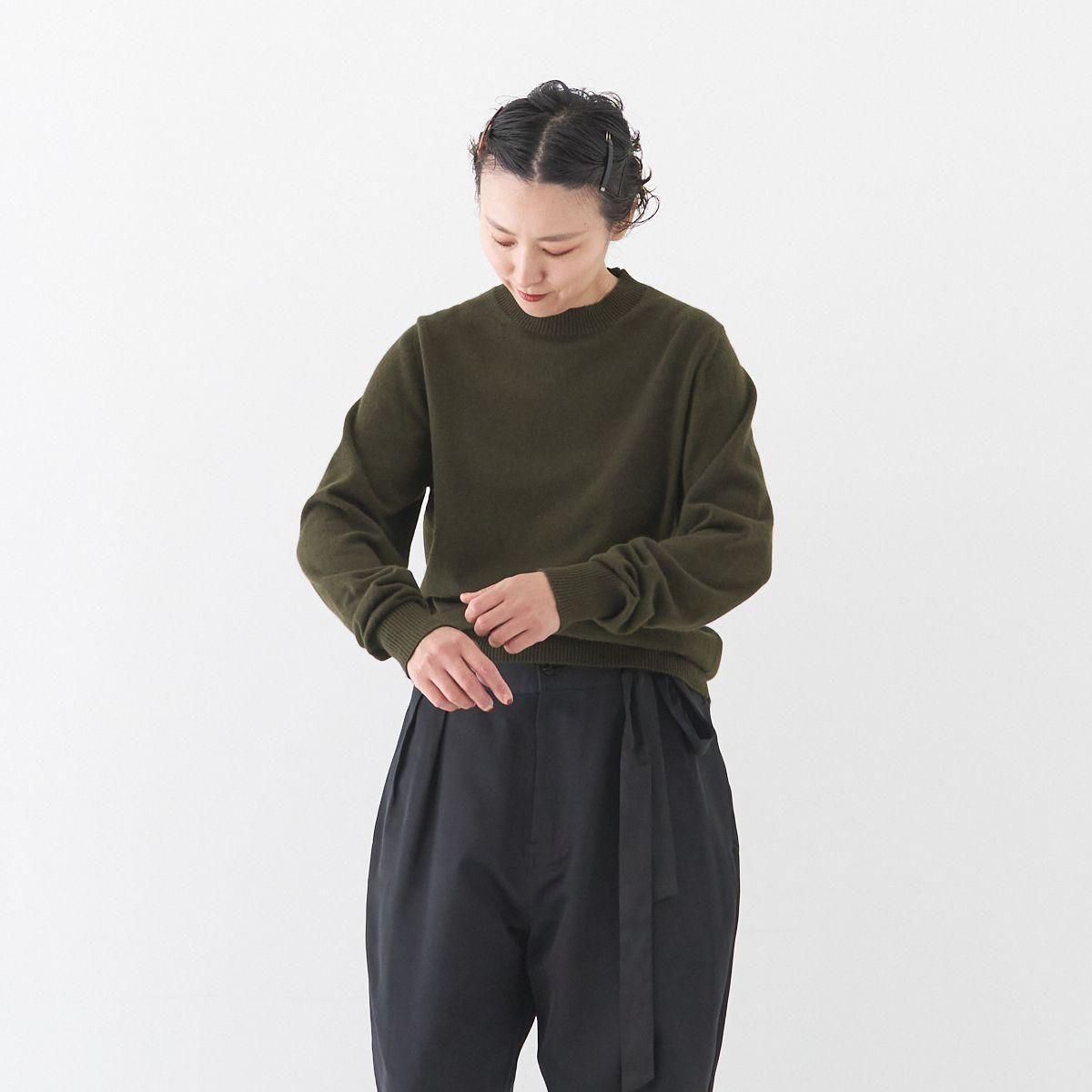 humoresque(ユーモレスク)はデザイナー 渡辺由夏さんの「ちょうど良い糸を、ちょうど良い形で編んでみたい。」との想いから2012年の秋冬シーズンにニットを中心とした衣服ブランドをスタートしました。 カシミヤ100%のクルーネックニット。 紡毛糸の温かみと極細番手のシャープさをバランスよく持ち合わせたカシミヤの中でも最高峰の糸で、見た目にも非常に軽く柔らかい風合いや温かみが伝わります。 オーバーすぎない程よいサイズ感、襟、袖、裾にリブの入ったシンプルなデザイン は素材の良さを引き立たせる仕上がりに。カラーリングも魅力です。 クセのないニットは様々なコーディネートに合わせていただけます。 23AW size: F 着丈56.5cm 肩幅41cm 身幅50cm 袖丈65cm color:mint green,moss green material:cashmere 100% model: 163cm お取り扱い店舗・・・dieci芝川ビル店 size_chart