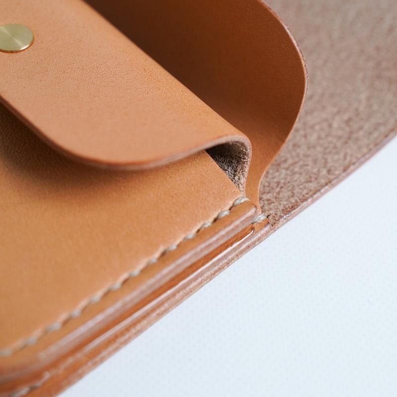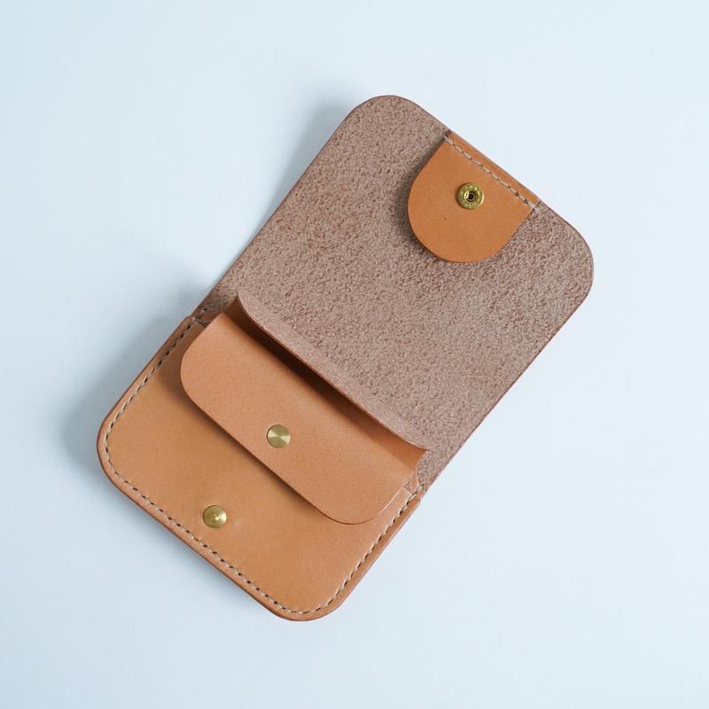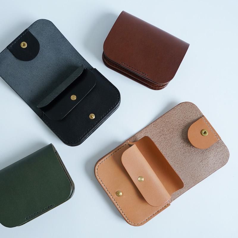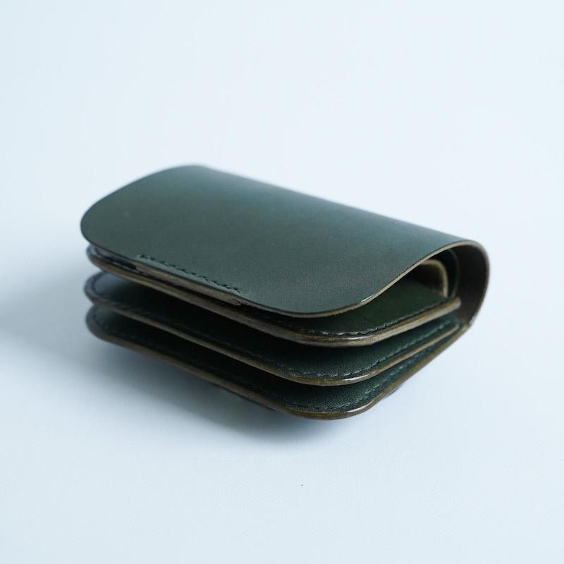 RHYTHMOS (リュトモス)は鹿児島を拠点に活躍されているハンドクラフトとレザーのブランド。飯伏さんのつくるレザーのアイテムは、ベジタブルタンニンで鞣された自然な風合いの素材を用いて、またそれらの処理をひとつひとつ丁寧に行った後、すべての工程を手作業で仕上げる素晴らしい仕事の上に作られています。 新しい財布・タップは、極めてシンプルな構造でコンパクトかつミニマムに持つことが出来ます。スナップボタンを開くと、お札を縦に差し込む構造になっているので、出し入れがスムーズで、お札を財布から出さずに簡単に枚数を数えることが出来ます。左右の向きを気にせず使えるつくりも特徴です。お釣りで発生する少量のコインを収納するのに十分な小銭入れと、その後ろには4〜6枚のカードをまとめて収納できるポケットがあり、必要最小限の容量で、荷物を小さく少なく持ちたい方に最適です。スマホ決済など、世の中が便利になり、時代とともに持ち物の種類や量、サイズも移り変わっていく中で、リュトモスなりの解釈で提案する、新しい生活道具です。 color: Origin Natural Bottle Green Choco Brown Pitch Black 25,300円 stone(2025S/S限定カラー) 26,400円 Size:W11cm×H8.5cm×D2.5cm 牛ヌメ革 内容量目安:カード4~6枚 その他、RHYTHMOSの商品はこちら。 ※レザーの風合いは材料の部分によって若干異なります。シボやシワなどが見られる場合がありますが、これは不良ではなく天然皮革の特性としてご理解くださいませ。 こちらはブランドの意向によりonline shopでのカート販売を控えさせていただいております。ご希望の方はメールまたは下記お問い合わせフォームより、ご連絡くださいませ。その際、ご希望のサイズと点数の他、フルネーム / お電話番号 / ご住所 / ご希望の決済方法(クレジットカード決済・ゆうパックコレクト代引き・銀行振込み)を必ず併せてご記載ください。記載漏れがある場合、商品の確保が出来かねますのでご注意ください。 お取り扱い店舗…dieci天神橋店