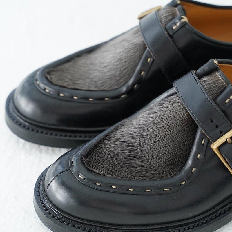デザイナー小島明洋氏と日本の熟練した職人達が作り上げる靴ブランド「forme」。形の元となる木型にこだわり、手作業で削り一足一足作り上げられた靴は履き心地が良く耐久性に優れています。イタリアを中心とした世界中の厳選された革が使われており、見た目だけでなく質にもこだわって選び抜かれている革は使い込むほどに味わいが生まれます。 こちらは、ダブルステッチや、ミッドソールなどボリューム感を加えることを意識して作られた新作のWelld。 甲の部分には希少となっているアザラシの毛皮を使用。クラス(馬の臀部の皮)はきめが細かい上質なレザーです。 モカ部分など職人による手縫いで仕上げられ、完成度の高いモデルとなっております。 上品なスタイリングはもちろん、カジュアルスタイルのアクセントとしてもおすすめです。 またソールはラバーソールなので、疲れにくく雨の日でも着用していただきやすいです。 forme ff -135 グッドイヤーウェルテッド製法 last:13 color: Black×gray material: Class(馬革)×Seal(アザラシ) ※アザラシの毛部分は色の濃さ・斑点の出方など個体差がございます。 size: 3・・・22.5cm 3 1/2・・・23.0cm 4・・・23.5cm ※サイズはブランド表記となります。 表記よりやや大きめのサイズ感です。 ※天然皮革を使用した職人による手作業の為、小ジワ、小キズなどが見られます。 味わいとしてご理解くださいませ。 model:身長163cm 幅狭甲薄 23.5cm forme #3着用 beautiful shoes 23.5cm 着用 NOVESTA #38 着用 取扱い店舗・・・dieci芝川ビル店