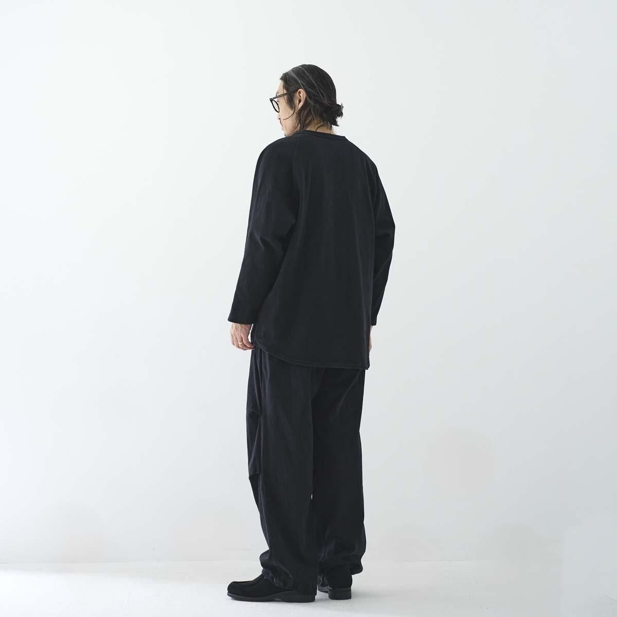 2011年にデザイナー小森啓二郎が立ち上げたブランド。 全ての洋服の原型は、ある目的の為に作られた物である。 この考えを基に、その時の気分や感覚を取り入れた洋服を提案しています。 2019年9月、南青山に旗艦店をオープン。 こちらは継続で展開されているコットンジャージベースボールTシャツ。 程よい厚みで吸水性があります。 今期は色落ちさせて表情を出し、よりドライな質感に仕上げられています。 ※この製品は素材の特性上、水や汗などで湿った状態、または摩擦により他のものに色移りすることがあります。 白物、淡色衣類と合わせての着用の際はご注意ください。 洗濯は他のものと分けて洗って ください。 濡れた状態で他の製品と一緒に放置されることの無い様、ご注意お願いします。 color:BLACK size:2,3,4 2:着丈73cm 身幅58cm 裄丈77cm 3: 着丈79cm 身幅62cm 裄丈80cm 4:着丈80cm 身幅63cm 裄丈81cm material:COTTON 100% model: 173cm (#3着用) 取扱い店舗…dieci芝川ビル店