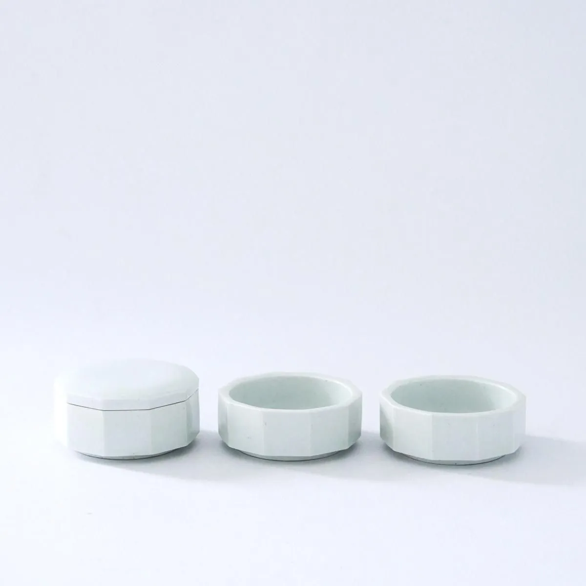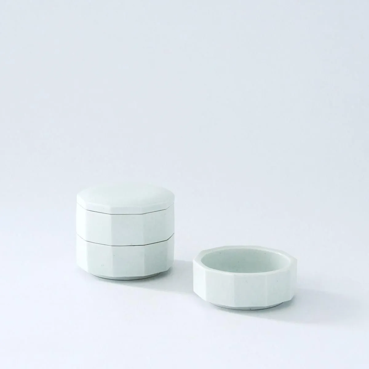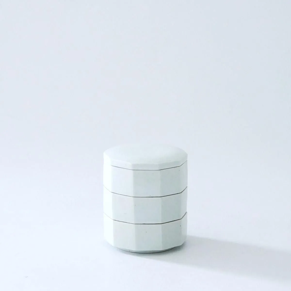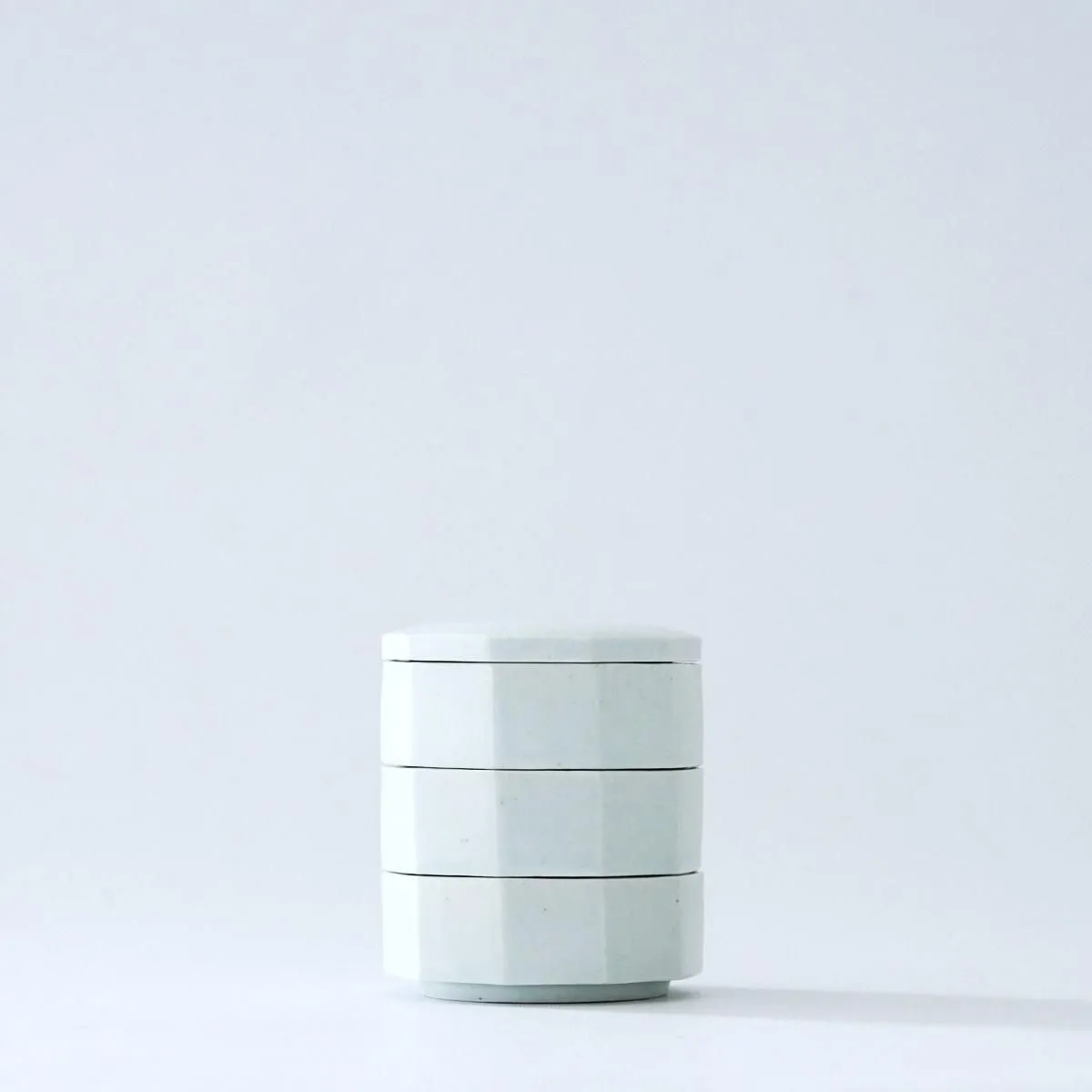 キム・サンインさんは、韓国・安城を拠点とする伝統工芸陶芸家で、朝鮮白磁による白をテーマとした作品を制作しています。 朝鮮白磁とは、李氏朝鮮で作られた白い釉薬を用いた磁器で、儒教の「清貧の美」、質素な生活のうちに純粋な美しさを見出そうとする思想が反映されています。 キム・サンインさんの純白かつ洗練された形態の作品は、そんな儒教精神を受け継ぎながらも、現代の生活にすっと溶け込むような魅力を持っています。 こちらは重ねることのできる3つの鉢がセットになっています。 小鉢として、副菜、キムチなどのお漬物をのせるのにぴったりのサイズです。 お茶漬けの具材を入れたり、焼肉のタレを入れたりしてお楽しみいただくのもおすすめです。 size: (一段当たり)約 Φ6.5 × H2.5 cm (三段重ねて蓋を含めた大きさ)約 Φ6.5 × H8.0 cm ※手仕事によって作られているため、大きさ、形、釉薬のかかり方に個体差がある場合があります。 取り扱い店舗・・・dieci kyutaro店 1F 商品紹介ブログはこちら ▶︎