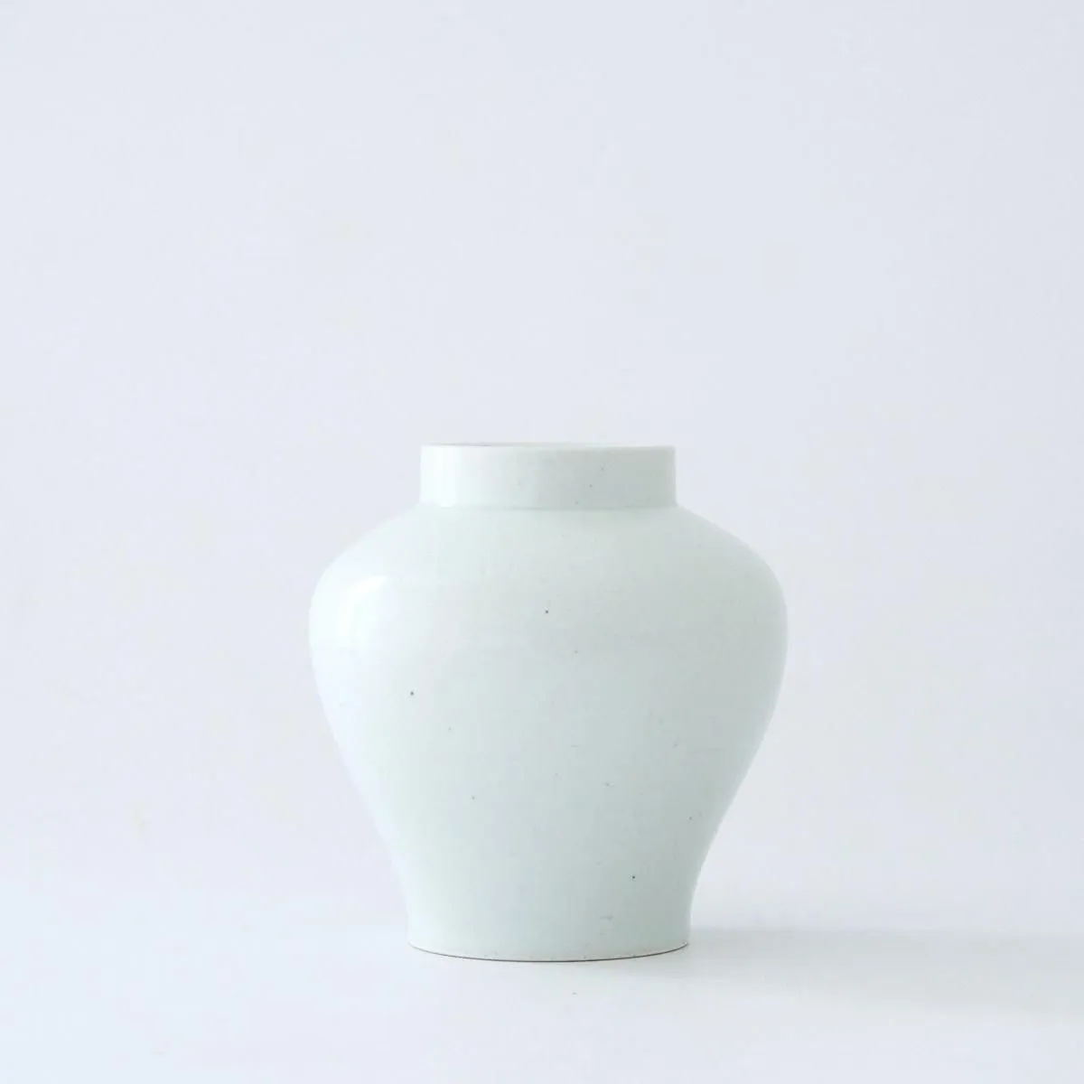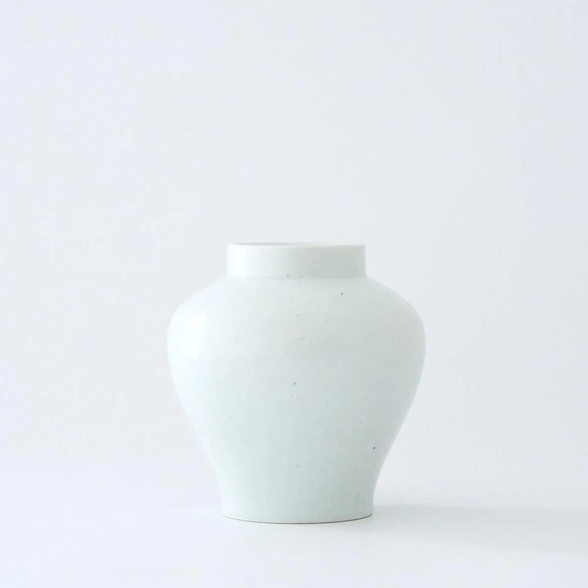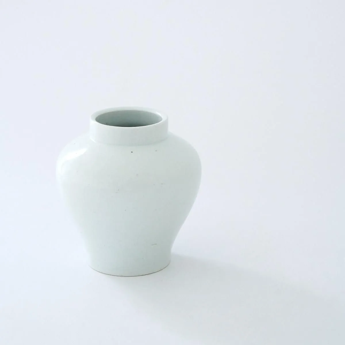 キム・サンインさんは、韓国・安城を拠点とする伝統工芸陶芸家で、朝鮮白磁による白をテーマとした作品を制作しています。 朝鮮白磁とは、李氏朝鮮で作られた白い釉薬を用いた磁器で、儒教の「清貧の美」、質素な生活のうちに純粋な美しさを見出そうとする思想が反映されています。 キム・サンインさんの純白かつ洗練された形態の作品は、そんな儒教精神を受け継ぎながらも、現代の生活にすっと溶け込むような魅力を持っています。 こちらは花器です。 シンプルながらも、まんまるとぷっくりした形は存在感があります。 少し大きさに余裕のある口のため、束で挿すのにもおすすめです。 真っ白で滑らかな質感の磁器は、どんなお色のお花も引き立ててくれます。 size : (全体)約 Φ11.5 × H12.0 cm (口部分の広さ)約 Φ5.5 cm ※手仕事によって作られているため、大きさ、形、釉薬のかかり方に個体差がある場合があります。 取り扱い店舗・・・dieci kyutaro店 1F 商品紹介ブログはこちら ▶︎
