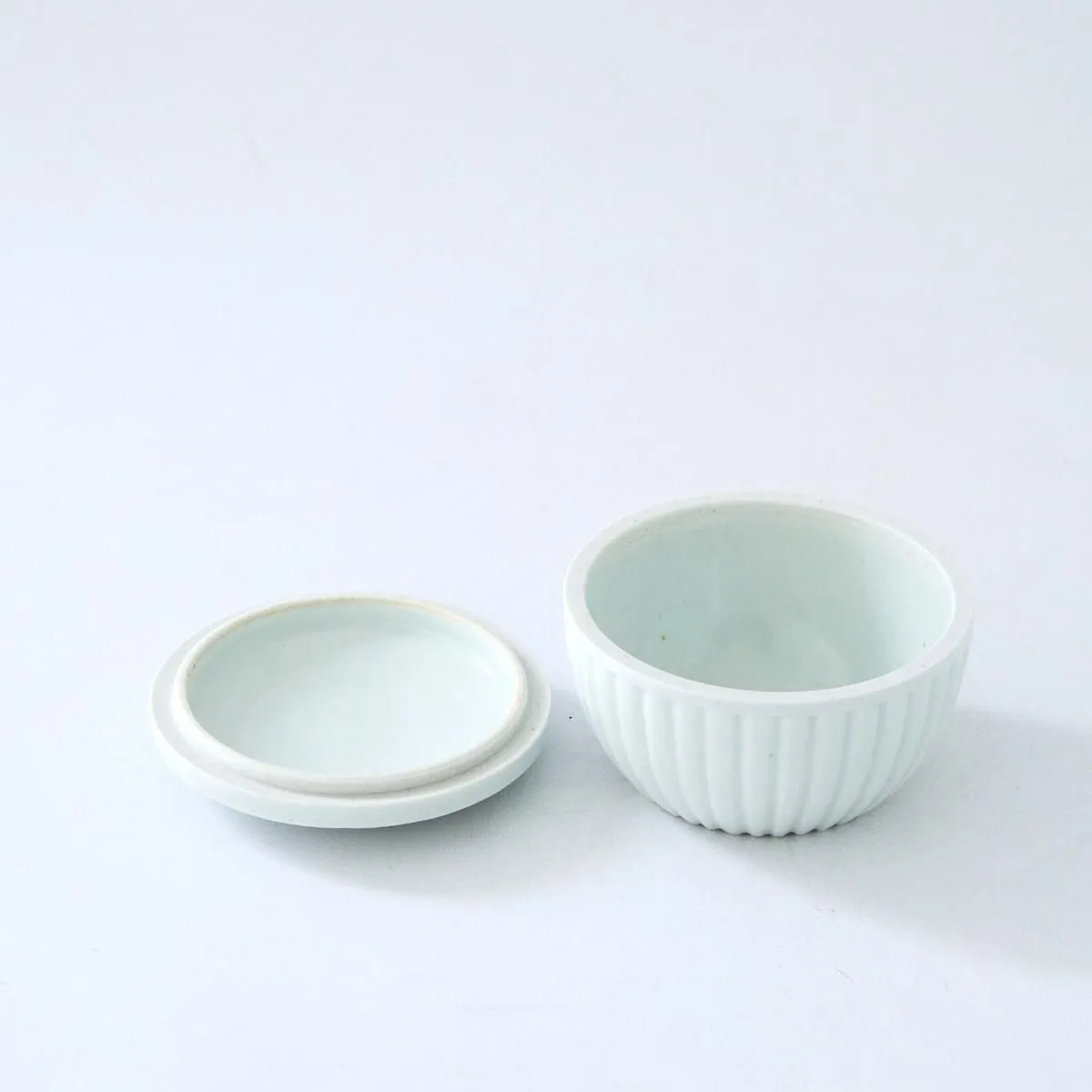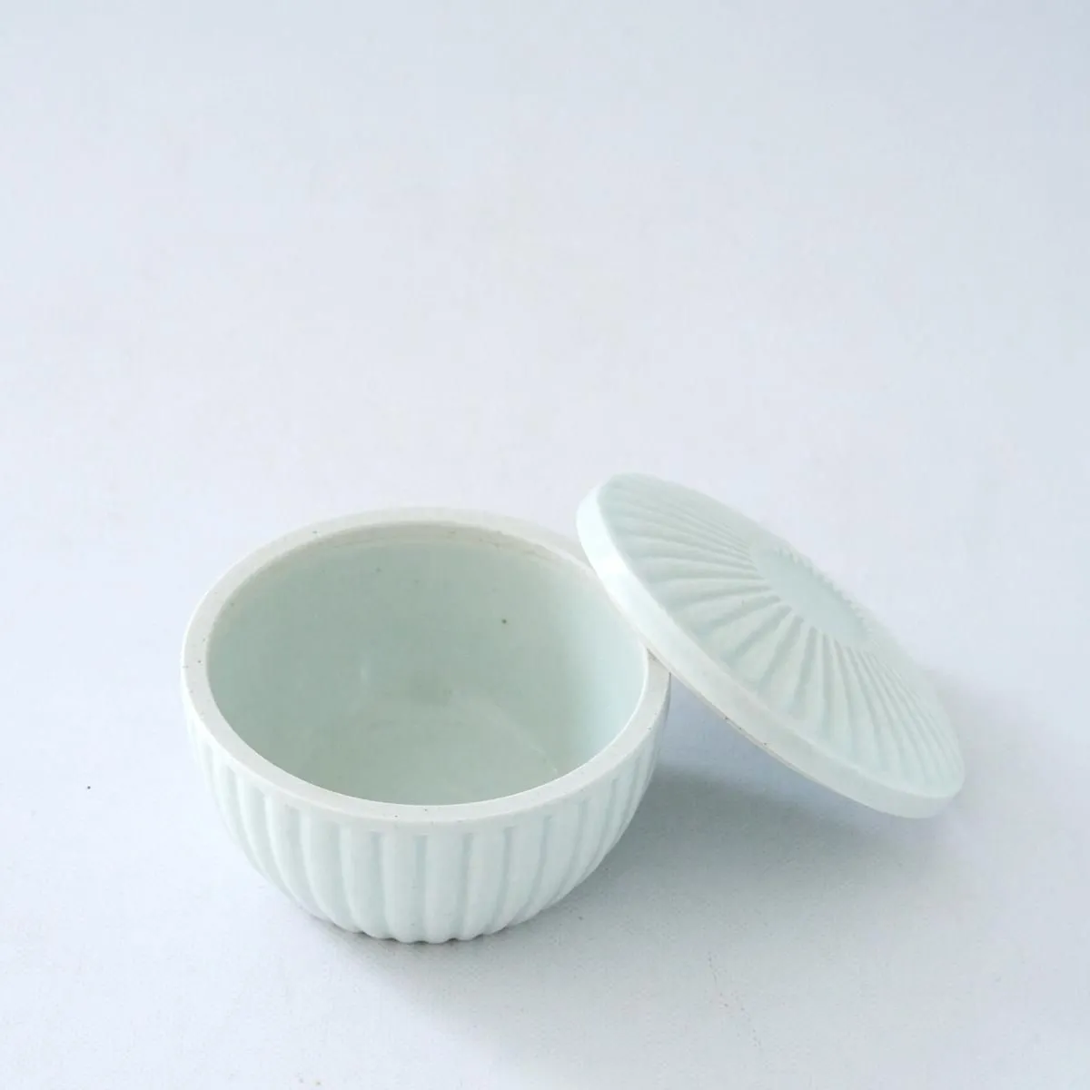キム・サンインさんは、韓国・安城を拠点とする伝統工芸陶芸家で、朝鮮白磁による白をテーマとした作品を制作しています。 朝鮮白磁とは、李氏朝鮮で作られた白い釉薬を用いた磁器で、儒教の「清貧の美」、質素な生活のうちに純粋な美しさを見出そうとする思想が反映されています。 キム・サンインさんの純白かつ洗練された形態の作品は、そんな儒教精神を受け継ぎながらも、現代の生活にすっと溶け込むような魅力を持っています。 こちらは蓋付きのキルト柄が描かれたお碗です。 韓国では冷めないように蓋がついたお碗にご飯を装う習慣があるのだそうです。 日本でもそういった使い方はもちろん、蓋物のように常備しているお漬物や梅干などを入れてお使いいただいても。 また、小鉢としてもお使いいただけるので幅広い用途でご愛用いただけます。 size: (蓋含む)約 Φ9 cm × H6 cm (蓋含まない)約 Φ9 cm × H4.5 cm ※手仕事によって作られているため、大きさ、形、釉薬のかかり方に個体差がある場合があります。 取り扱い店舗・・・dieci kyutaro店 1F 商品紹介ブログはこちら ▶︎