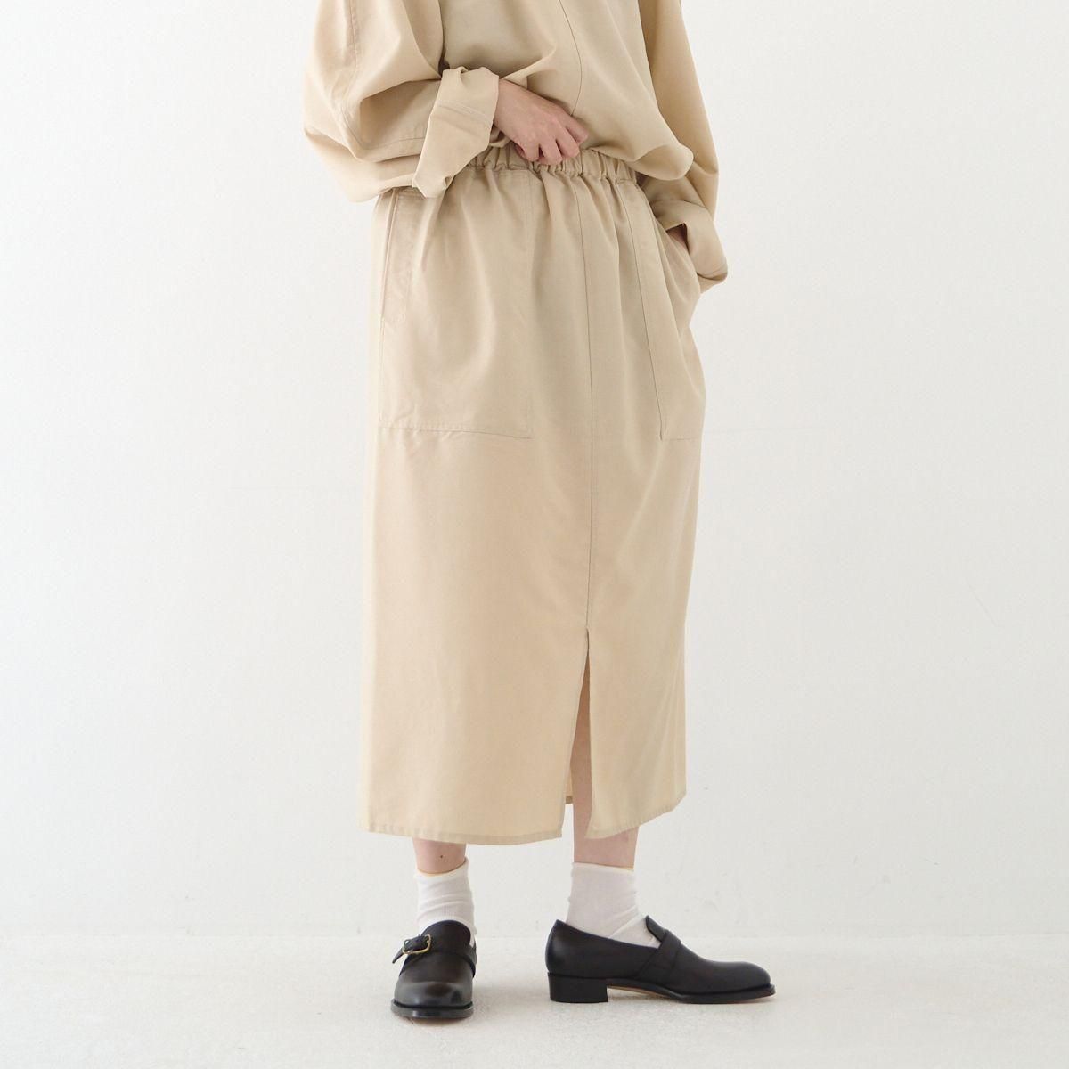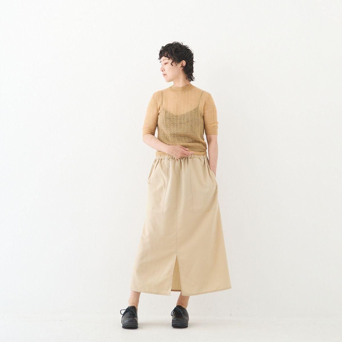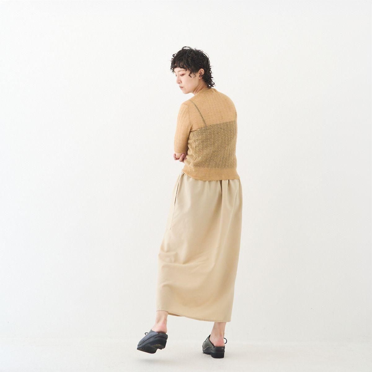 「SONO」はデザイナーStephaie ObergとSimon Homesがロンドンを拠点にするブランドで、2人は「ポールスミス」のクリエイティブディレクターや「ザ・ロウ」「クリストフ・ルメール」のデザインに携わりながらキャリアを重ね、その経験から独自の美学や哲学を「SONO」というブランドで表現しています。 フランスやイギリスのアトリエで、服の美しさ、着やすさを追求しながら、熟練の職人の手によって1点1点丁寧な洋服作りを行っています。また、現代社会における役割として、徹底したエコな服作りにもこだわり、全ての素材をオーガニック、化学物質を使わずに収穫されたものだけを使うなど、素材選びにもこだわっています。 こちらは、SKIP Skirt。 ウエストはゴム仕様で履き心地はリラックス感もありながら、すっきりとしたシルエットのスカートはジャケットや、ブラウスなどと上品で落ち着いた印象にも。 程よくスリットも入っていて、両サイドについているポケットのステッチもポイントになっています。 サラッと軽く、薄手のナチュラルウール素材でシーズンも長く楽しんでいただけます。 size:M/L M:ウエスト34~56cm(ウエストゴム仕様) 総丈81cm L:ウエスト38~57cm(ウエストゴム仕様) 総丈83cm color:Dune material:Natural Wool 100% ドライクリーニングもしくは手洗い Made in France model:163cm お取り扱い店舗・・・ dieci芝川ビル店