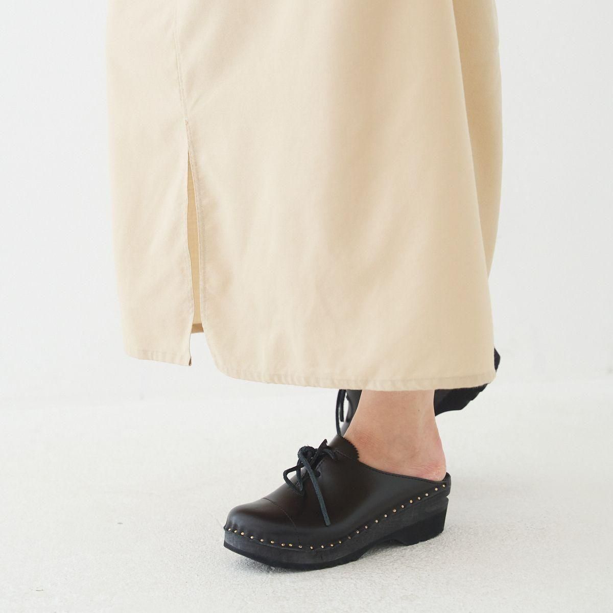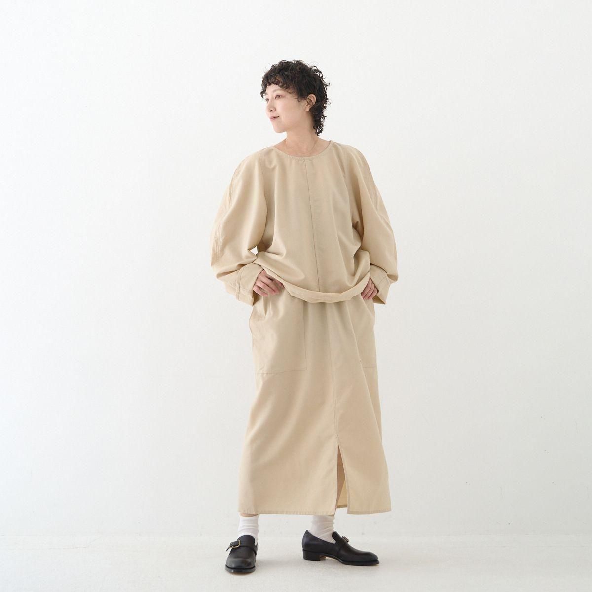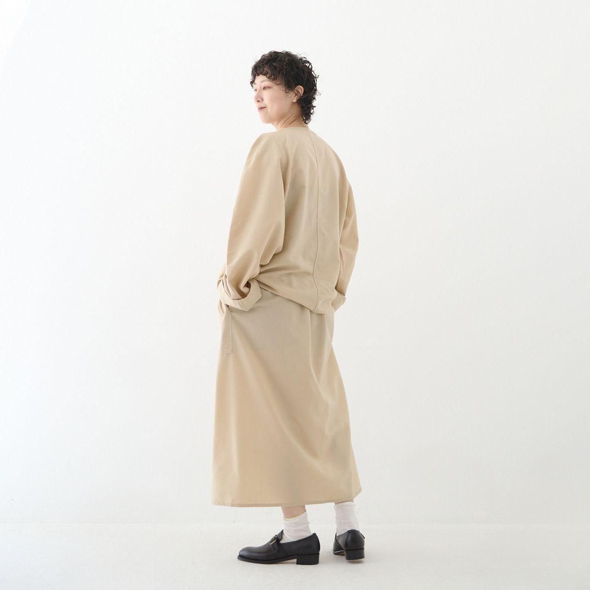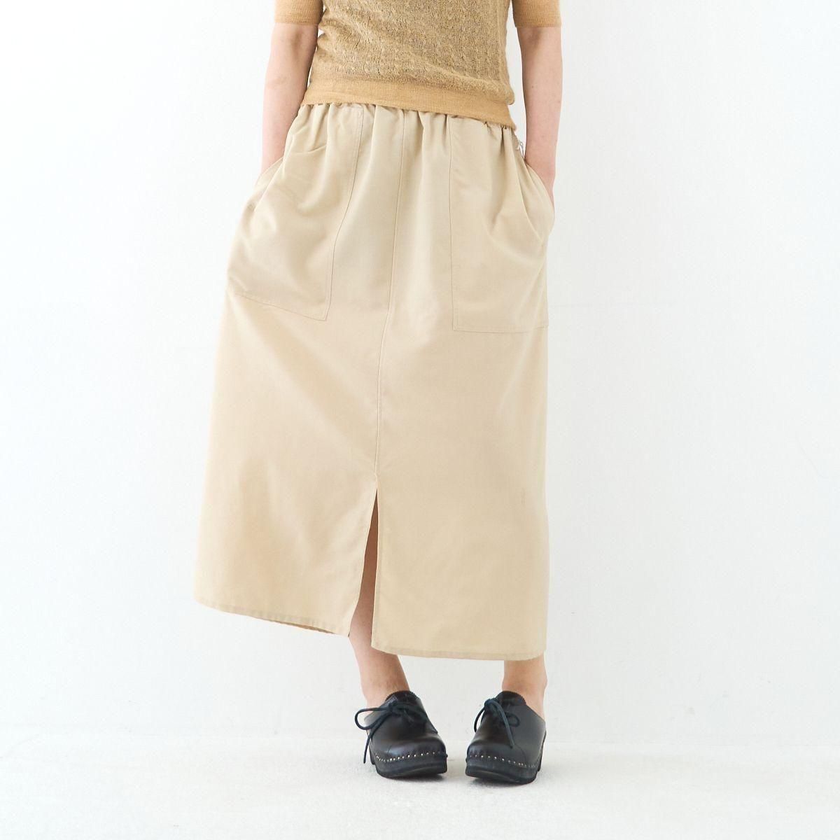 「SONO」はデザイナーStephaie ObergとSimon Homesがロンドンを拠点にするブランドで、2人は「ポールスミス」のクリエイティブディレクターや「ザ・ロウ」「クリストフ・ルメール」のデザインに携わりながらキャリアを重ね、その経験から独自の美学や哲学を「SONO」というブランドで表現しています。 フランスやイギリスのアトリエで、服の美しさ、着やすさを追求しながら、熟練の職人の手によって1点1点丁寧な洋服作りを行っています。また、現代社会における役割として、徹底したエコな服作りにもこだわり、全ての素材をオーガニック、化学物質を使わずに収穫されたものだけを使うなど、素材選びにもこだわっています。 こちらは、SKIP Skirt。 ウエストはゴム仕様で履き心地はリラックス感もありながら、すっきりとしたシルエットのスカートはジャケットや、ブラウスなどと上品で落ち着いた印象にも。 程よくスリットも入っていて、両サイドについているポケットのステッチもポイントになっています。 サラッと軽く、薄手のナチュラルウール素材でシーズンも長く楽しんでいただけます。 size:M/L M:ウエスト34~56cm(ウエストゴム仕様) 総丈81cm L:ウエスト38~57cm(ウエストゴム仕様) 総丈83cm color:Dune material:Natural Wool 100% ドライクリーニングもしくは手洗い Made in France model:163cm お取り扱い店舗・・・ dieci芝川ビル店