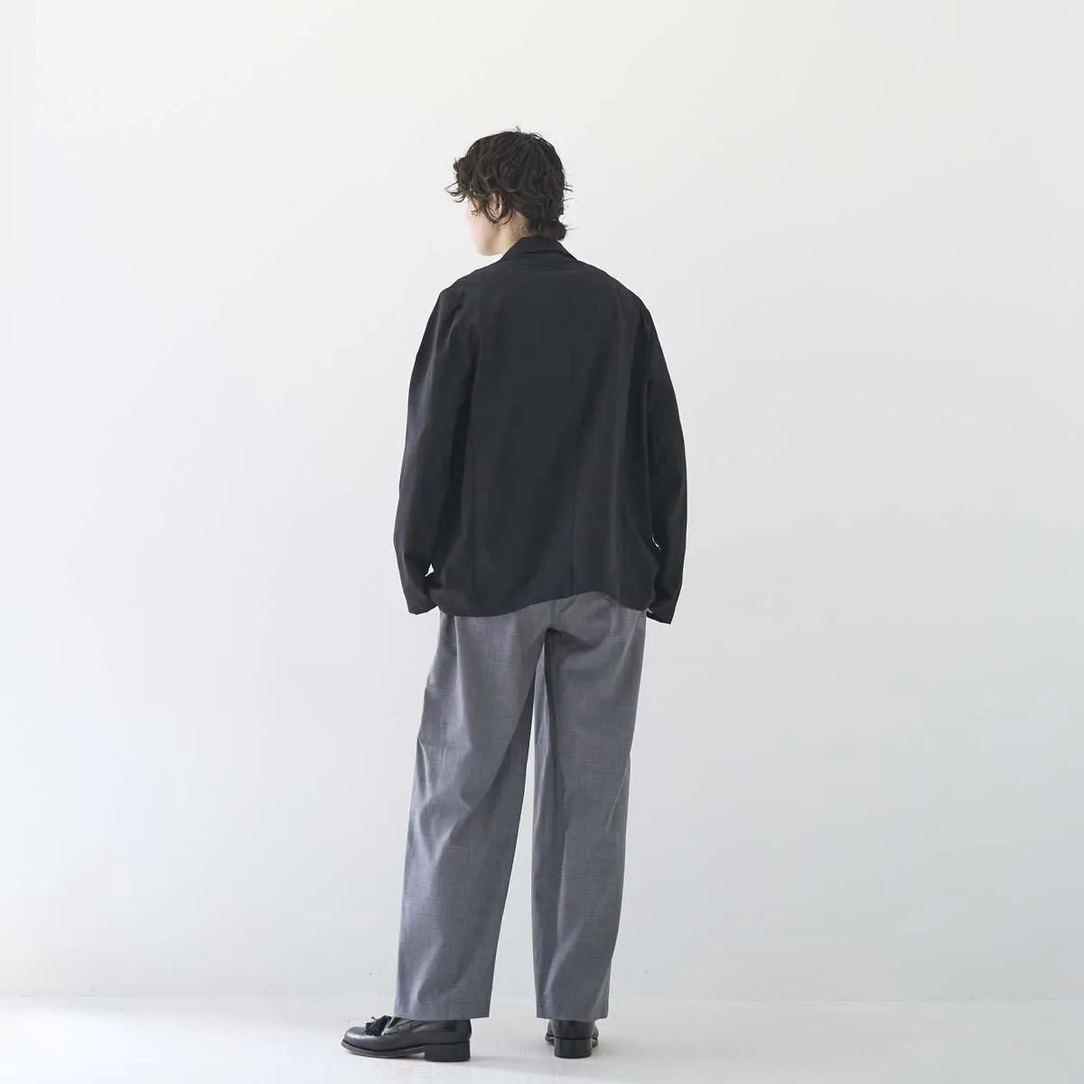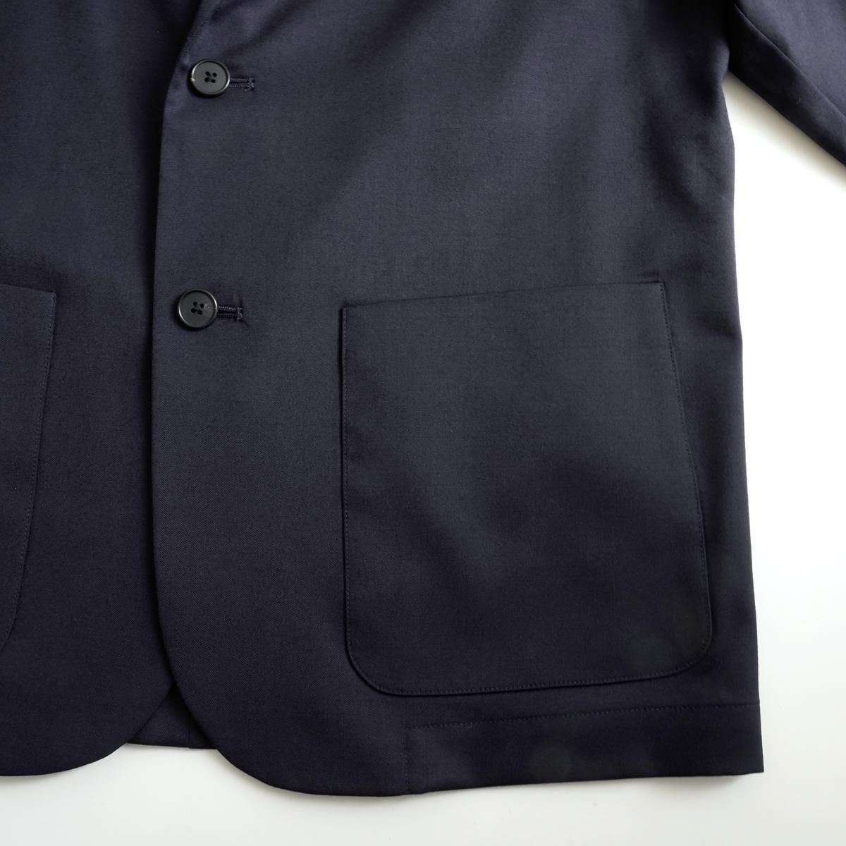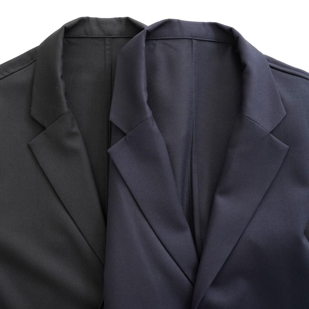 ゆとりのあるサイズ感のベーシックなテーラードジャケット。 非常に柔らかく滑らかなウール素材で、控えめな艶感が知的で上品な印象を与えてくれます。 テーラードジャケットは流行りに左右されない定番のワードローブとして一枚は持っていたいアイテム。裏地のない軽量な作りなのでカジュアルに使えます。オフの日はもちろん、オフィスやハレの日の装いにも。シーンを選ばずご活用ください。NavyとBlackの2色展開です。 color:black・navy size:1・2 1:肩幅43cm 袖丈62cm 身幅54cm 着丈69cm 2:肩幅47cm 袖丈62cm 身幅58cm 着丈75cm ※サイズ計測の多少の誤差はご了承下さい。 material:wool100% model:163cm(#1着用) -------------------------------------------------------- holk(ホーク) "身近な人々のための服の在り方”をコンセプトに、尾州の小さな工場の熟練された職人の手によって機織りから縫製までの工程を行なっています。若き職人とともに技術を学び後世に残るものづくりに取り組み、また物作りから購入までに関わる全ての人の心が豊かになるプロダクトを目指しています。 size_chart