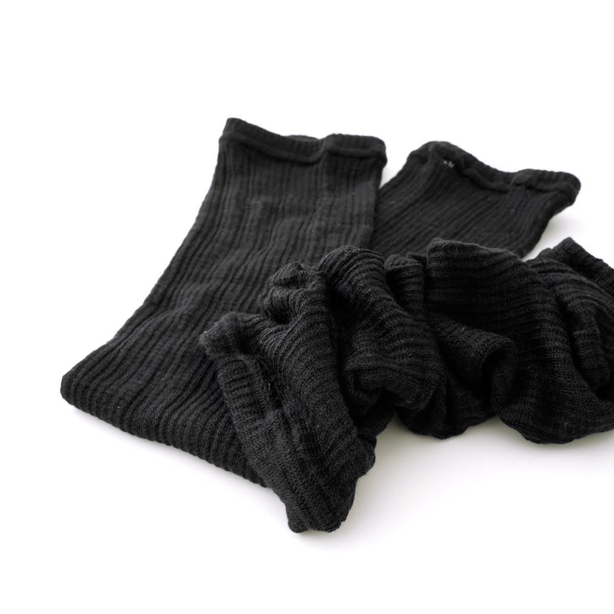 日常とともにある上質と高揚感を大切に丁寧なものづくりを行うブランド『ROTOTO』。 「冷え」に向き合い、温かさと高揚感をひと編みずつ紡ぐ、『AmwR』は『ROTOTO』が靴下づくりで培ってきた知恵と経験から生まれた温もりを纏うための新しいレーベルです。 吸湿性・放湿性に優れ、保湿効果も高いシルクは、肌にやさしい“呼吸する天然繊維”。その上質な風合いはそのままに、繰り返し洗濯しても経年変化しにくい“ウォッシャブルシルグ”を使用しています。ヨコ伸びに優れ、薄手でやわらかな着け心地。足首やふくらはぎを温めるレッグウォーマーにも、袖口からの冷気を防ぐアームウォーマーにも使えます。家の中はもちろん、外出時やオフィスなど、あらゆるシーンで活躍します。 size : Free 長さ45×径8cm(平置き) color : ECRU(sold out),BLACK material : シルク96% , ナイロン3% , ポリウレタン1% お取扱い店舗・・・dieci kyutaro店 1F