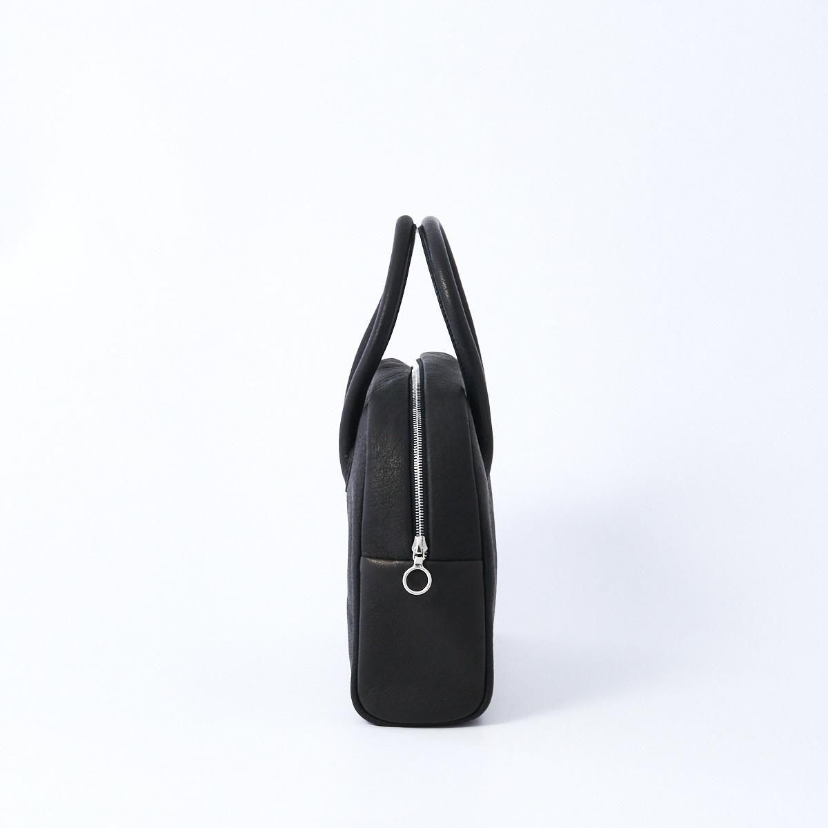 こちらはAeta定番のボストンバッグです。 滑らかで軽く柔らかなディアスキンレザーの表情が上質感があり、とても雰囲気のあるバッグです。 内側は丈夫なピッグレザー仕様。無駄の無いミニマルなルックスは様々なコーディネートに取り入れやすく、使い込むほどに味わいが増し、長くご愛用いただけるバッグです。長財布、ポーチ、スマートフォン等が入るくらいのサイズ。内側にポケットがひとつ付いています。 ※この製品は天然の皮革を使用しております。皮革の表面は傷がつきやすいので丁寧にお取り扱いください。また、ご使用中の摩擦や水濡れにより色落ちや色移りの可能性がございます。白色、淡色系の衣服との組み合わせの際は充分にご注意ください。 ・お手入れの際はベンジン類のご使用を避け、革製品専用のお手入れ用品をご使用ください。 ・水濡れや液状の汚れはシミや水ブクレになりやすいため、濡れてしまった場合は乾いた布で拭き取り、直射日光を避けた風通しの良い場所で乾燥させてください。 ・保管の際は高温や多湿の場所をお避けください。 SIZE : W210 H130 D60mm (S) ※サイズ計測の多少の誤差はご了承下さい。 MATERIAL : Deer Leather / Pig Leather COLOR:Black model:163cm お取り扱い店舗・・・dieci芝川ビル店 -------------------------------------------------------- Aeta(アエタ) 様々な国や地域に赴き、現地での一期一会を形にするバッグブランド。 ブランドネームの語源は日本語の「逢えた」に由来しています。バングラディッシュにて革の調達から生産までをおこなうなど、一つ一つの出逢いを大切に自由な発想で丁寧なものづくりされています。素材、製法の異なるいくつものシリーズがあります。
