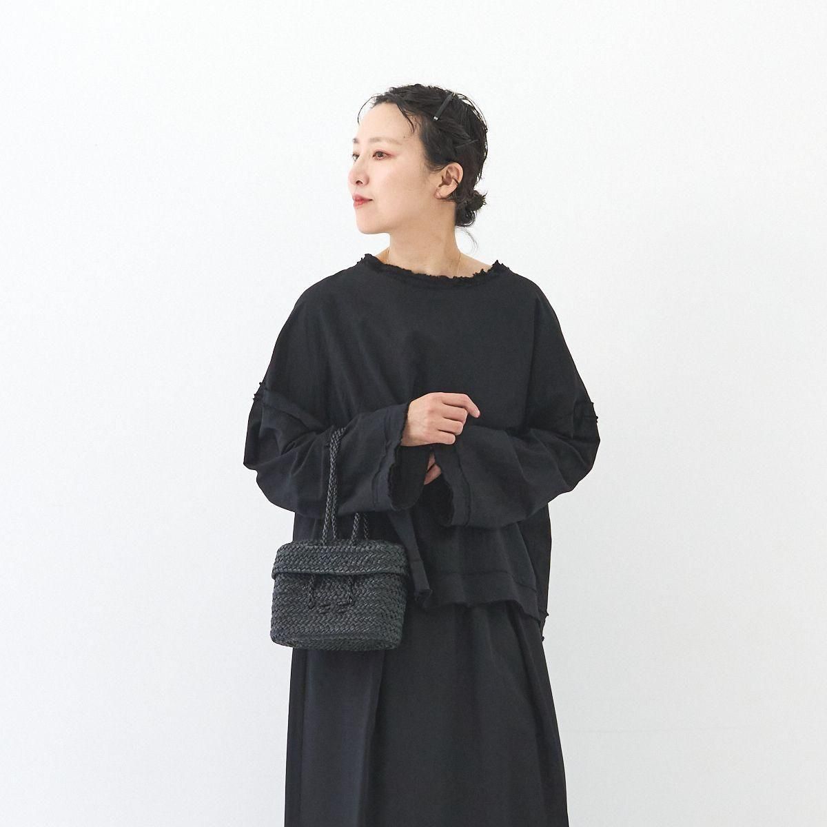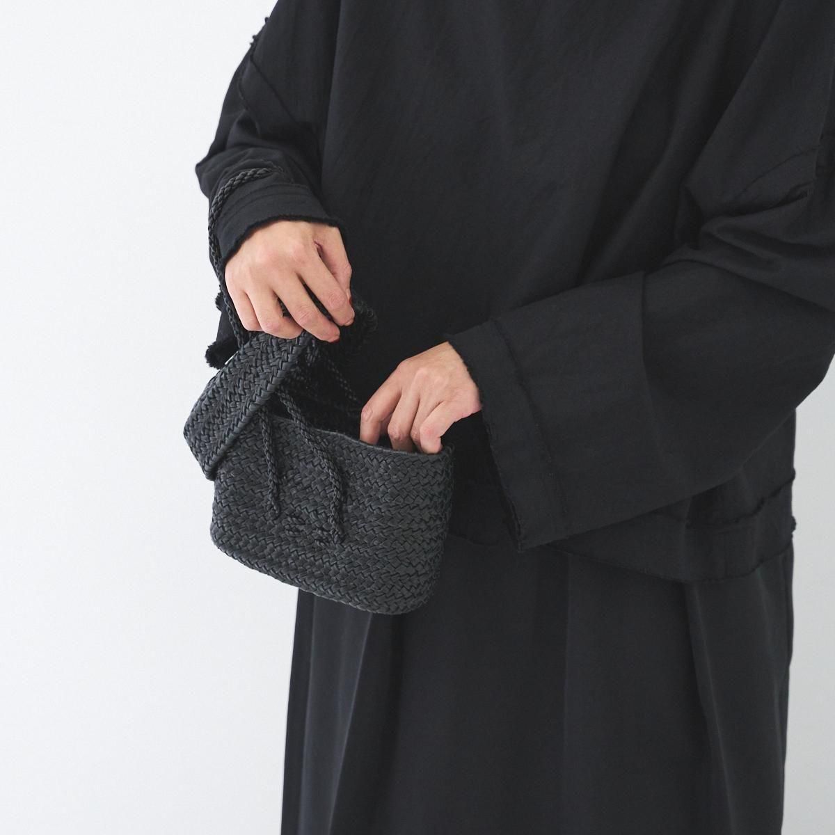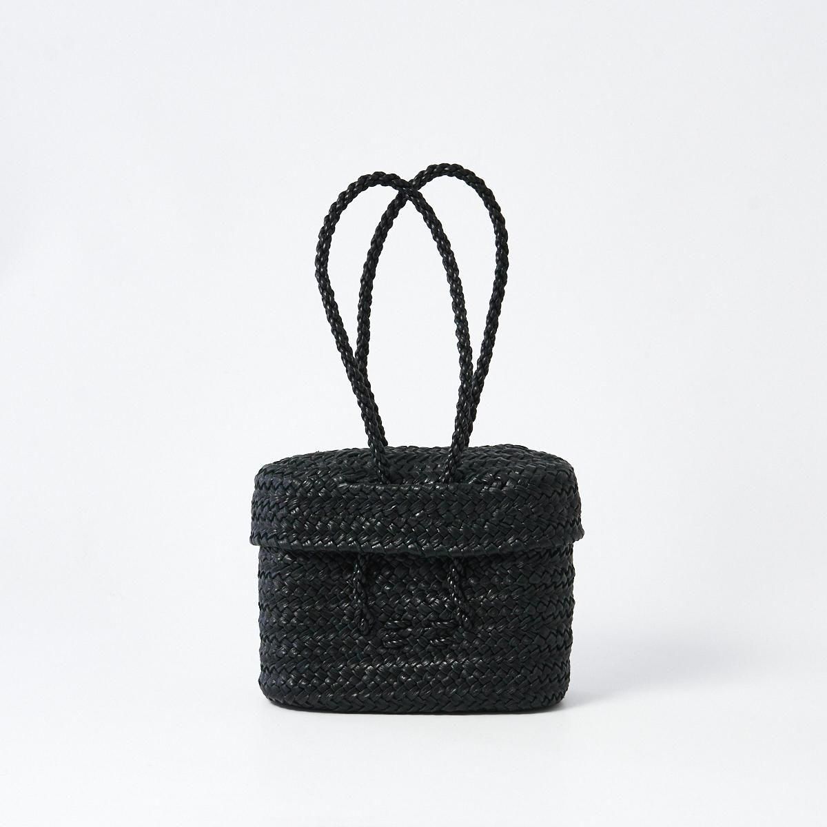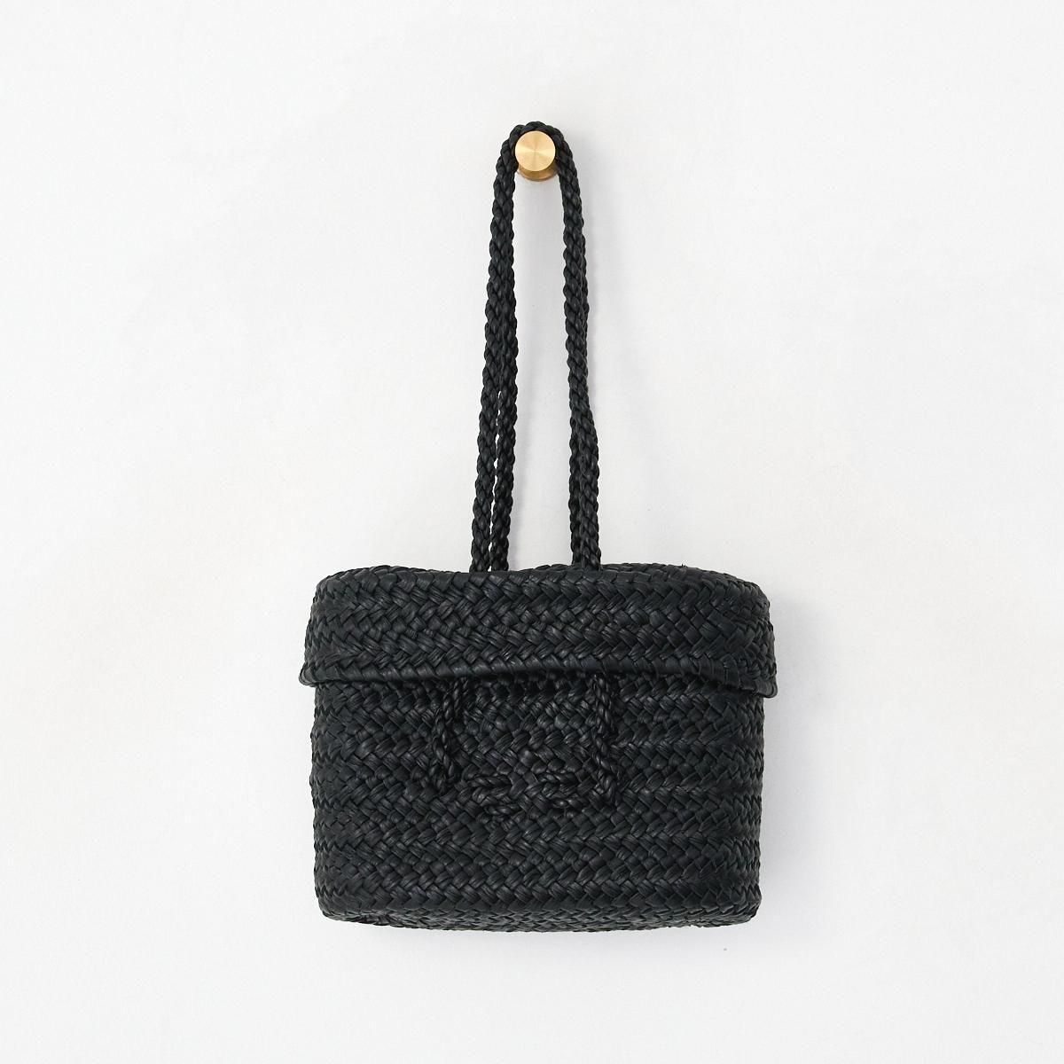 こちらはレザーで編み込んだかごバッグleather basketシリーズのLIDDED BASKET。 モロッコカゴの製法から木型をつくりバングラディシュの職人がひとつひとつ丁寧に作っています。 革は伸びないように試作を繰り返し、耐久性、強度があり、また革自体を薄くし張り合わせることでバッグの内側のケバがなく、型くずれしにくいように工夫されています。 上質感がありとても雰囲気のあるバッグです。 二つ折り財布、小さめポーチ、スマートフォンが入るくらいのサイズです。 SIZE : W20cm×H13.5cm×D9cm ※サイズ計測の多少の誤差はご了承下さい。 MATERIAL : Cow Leather COLOR : Black ※ハンドメイドの為、一点一点個体差がございます。 味わいとしてご理解くださいませ。 お取り扱い店舗・・・dieci芝川ビル店 -------------------------------------------------------- Aeta(アエタ) 様々な国や地域に赴き、現地での一期一会を形にするバッグブランド。 ブランドネームの語源は日本語の「逢えた」に由来しています。バングラディッシュにて革の調達から生産までをおこなうなど、一つ一つの出逢いを大切に自由な発想で丁寧なものづくりされています。素材、製法の異なるいくつものシリーズがあります。