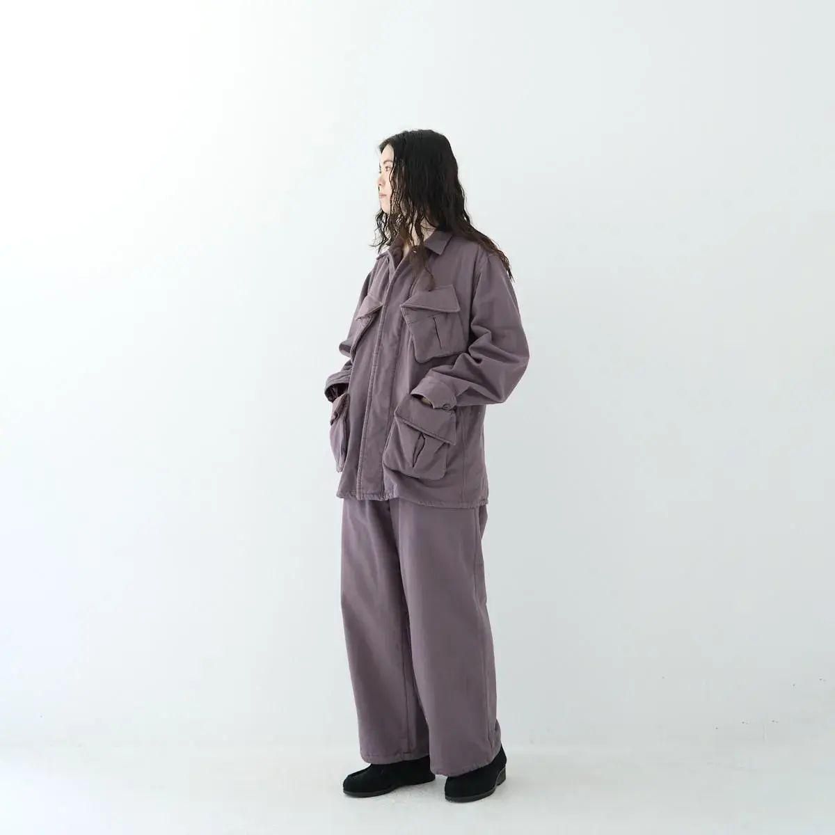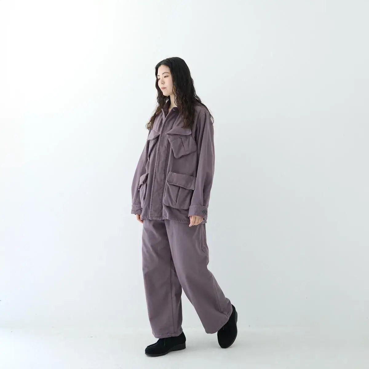 表はツイル織り、裏はボア調の起毛素材を組み合わせたダブルフェイス生地を使用したユーティリティジャケット。 ワークウェアやミリタリーウェアをルーツに持つユーティリティジャケットらしく、多機能ポケットや耐久性、防風性など実用性の高さが魅力です。 製品染めによる味わい深い風合いと、程よくゆとりを持たせたシルエットで、ラフさと品の良さを兼ね備えた一着に仕上がっています。 日本製 25AW size:3 着丈80cm, 身幅65cm, 肩幅51cm, 袖丈64.5cm color:BERRY STONE material:COTTON100% model: 173cm/168cm 取り扱い店舗・・・dieci kyutaro店2F ------------------------------------------------------- ポリプロイド(POLYPLOID)は、2017年にドイツ・ベルリンにてイゾルデ・オーギュスト・リッチリー(Isolde Auguste Richly)により設立。2018-19年秋冬コレクションにてデビュー。ブランド名のポリプロイドは化学用語で、「多倍数体」を意味する。3種類の異なる素材と色で展開することで、プロダクトに奥行きや広がりをもたらす実験的アプローチを試みている。生産はドイツおよび日本で行っている。ヨーロッパのマテリアルはドイツで縫製され、日本のマテリアルは日本で作られる。