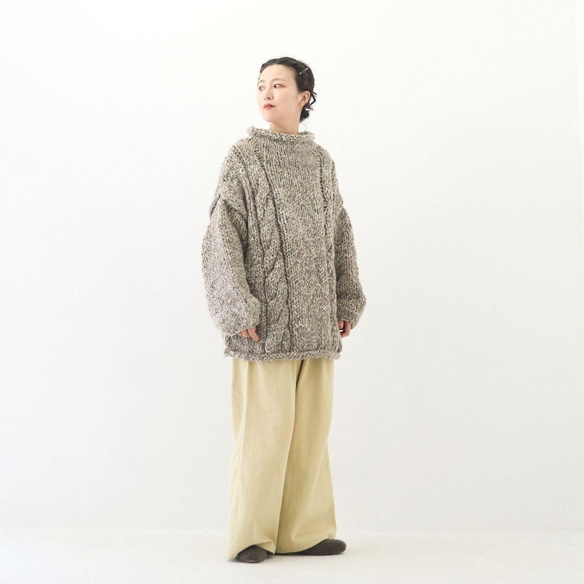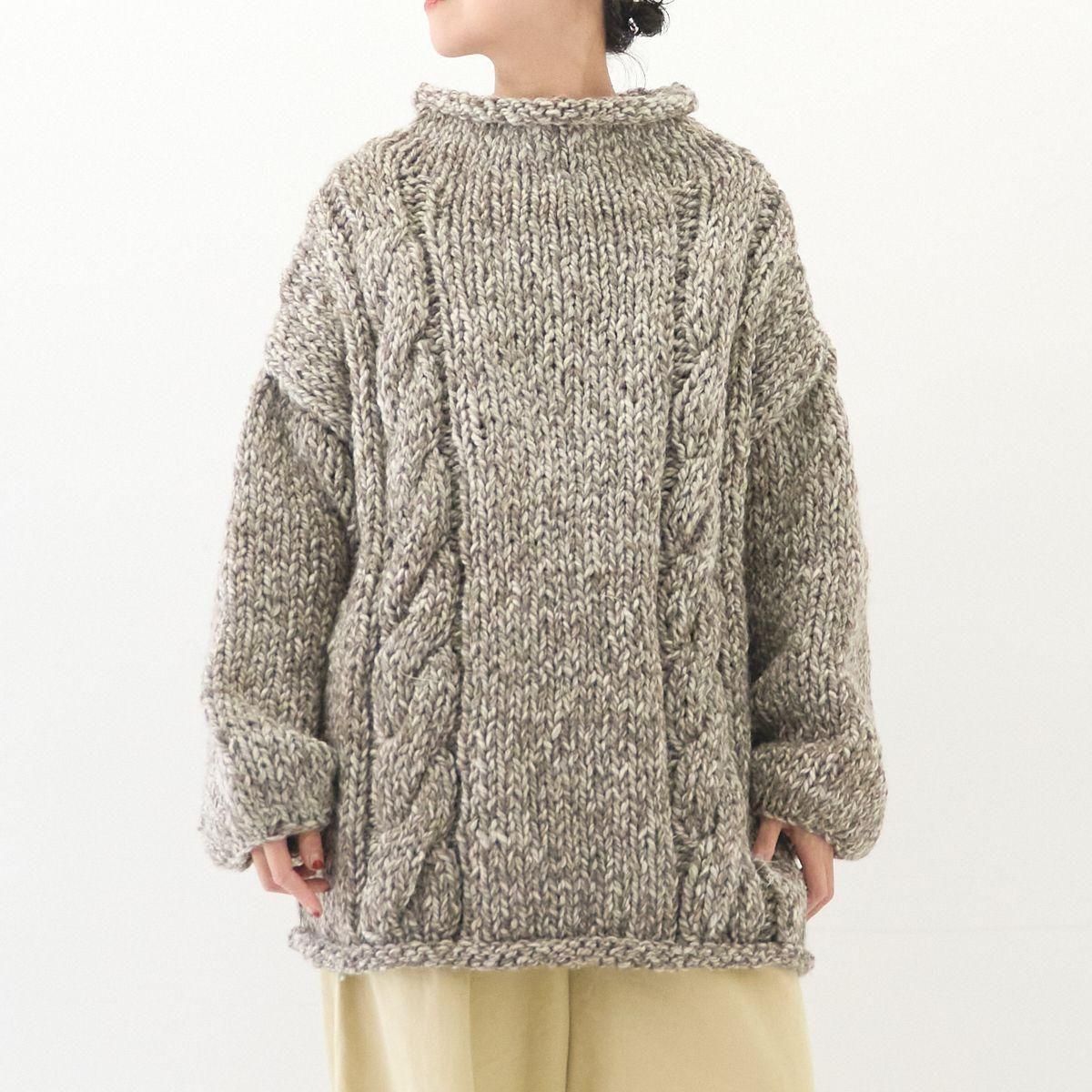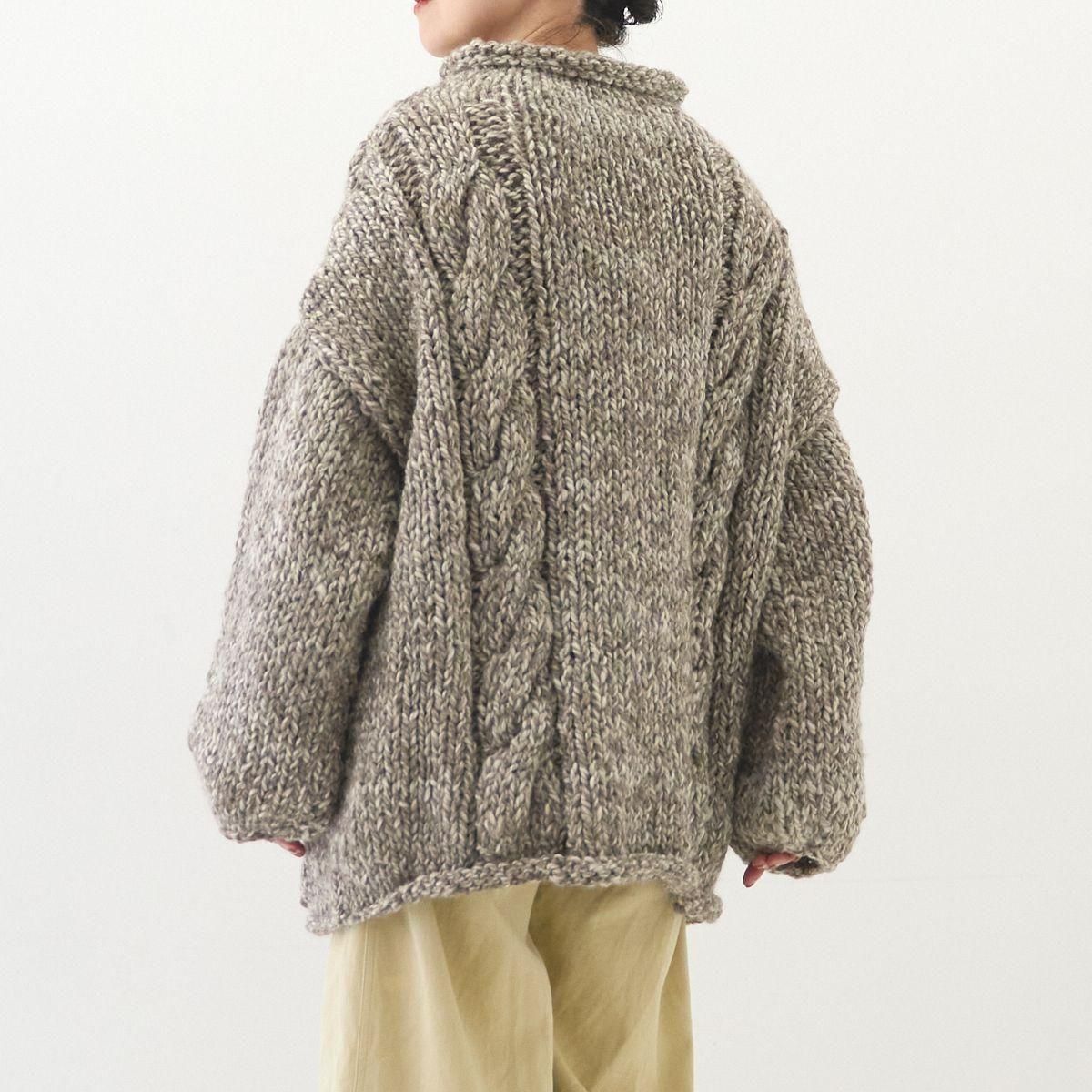 ざっくりと編み上げたケーブル柄のニットです。 見た目ほどの重量感もなく季節を楽しめるニットです。 ユニセックスでお召しいただけます。 MENS color: VISON MELANGE size: M 着丈74cm 身幅70cm 袖丈45cm 肩幅68cm ※ハンドニットの為、個体差がございます。 material:virgin wool100% model: 163cm ----------------------------------------------- MAYDIはロンドンのファッションカレッジ卒のアルゼンチン人女性デザイナー、Maria Zolezziにより2014年スタート。デザイナーの故郷であるアルゼンチンで。持続可能かつ自然由来であることにこだわった天然素材・染色を使用。またMAYDIのニットは全てアルゼンチンの伝統的な手織り方法で織られております。 お取り扱い店舗・・・dieci芝川ビル店